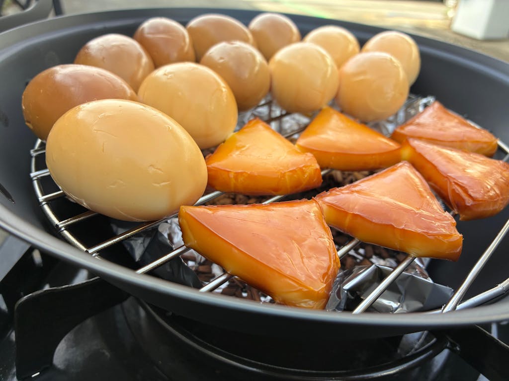 スモークウッドを使った燻製からチップを使った燻製をしたかったと思っていたところ、こちらの商品に出会いました。手始めに簡単にできるチーズと味付けたまごをチョイス。また、牡蠣の燻製をしてオイル漬けにしてみました!ゆくゆくはベーコン作りにチャレンジしたいですね。