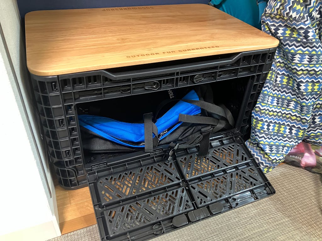 5050のフォールディングコンテナを買って、天板を付けるか迷いましたが、買ってみた結果、天板が無いとコンテナの魅力が半分も発揮されない商品だとわかりました。