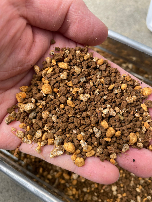 硬質の赤玉土を基本に鹿沼土や軽石などを独自ブレンドしたこちらの用土は、いかに根を強く丈夫に育てるかという事に焦点を当て作られました。 徹底的に無駄な成分を省き、必要な成分のみを残した基本用土ですので、枯らしたくない大切な植物をお持ちの方にオススメです。どんな植物にもご利用いただけます。