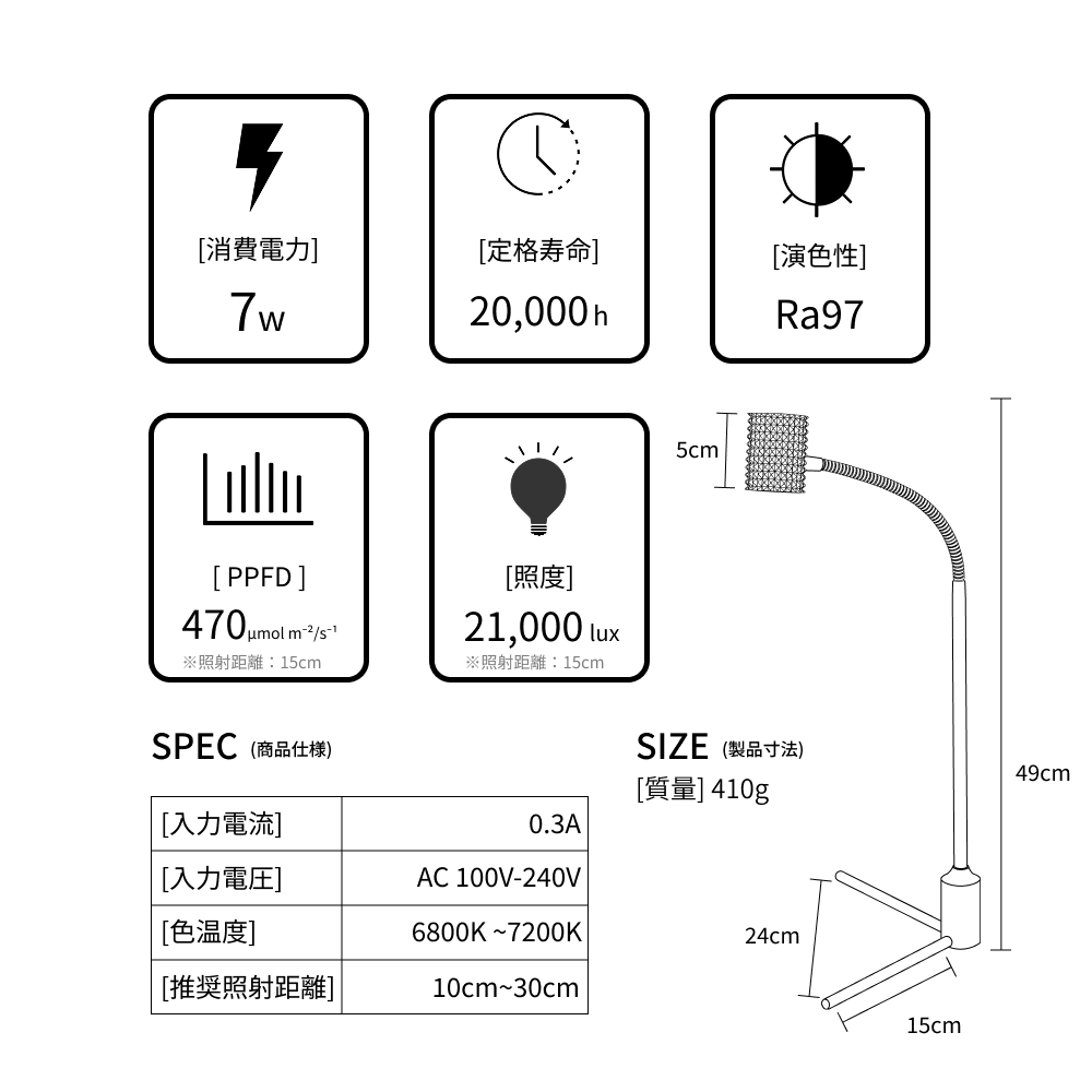 植物の見た目もまるで太陽に照らされているように美しく演出することができます。 お気に入りの植物にぜひご使用下さい。