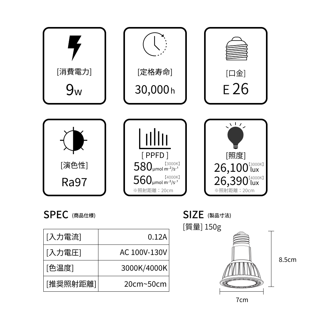 【 PPFD 】 580µmol/m²/s