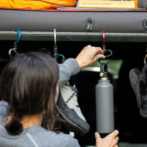 フックの先端にグリップ性の高い素材が使われており、机にバッグを引っかけたり、ロープに何かを吊るしたりなど日常はもちろん、アウトドアや旅行用に最適です。便利な機能が多数備わっており、必要な時にすぐ活用できるアイテムです。