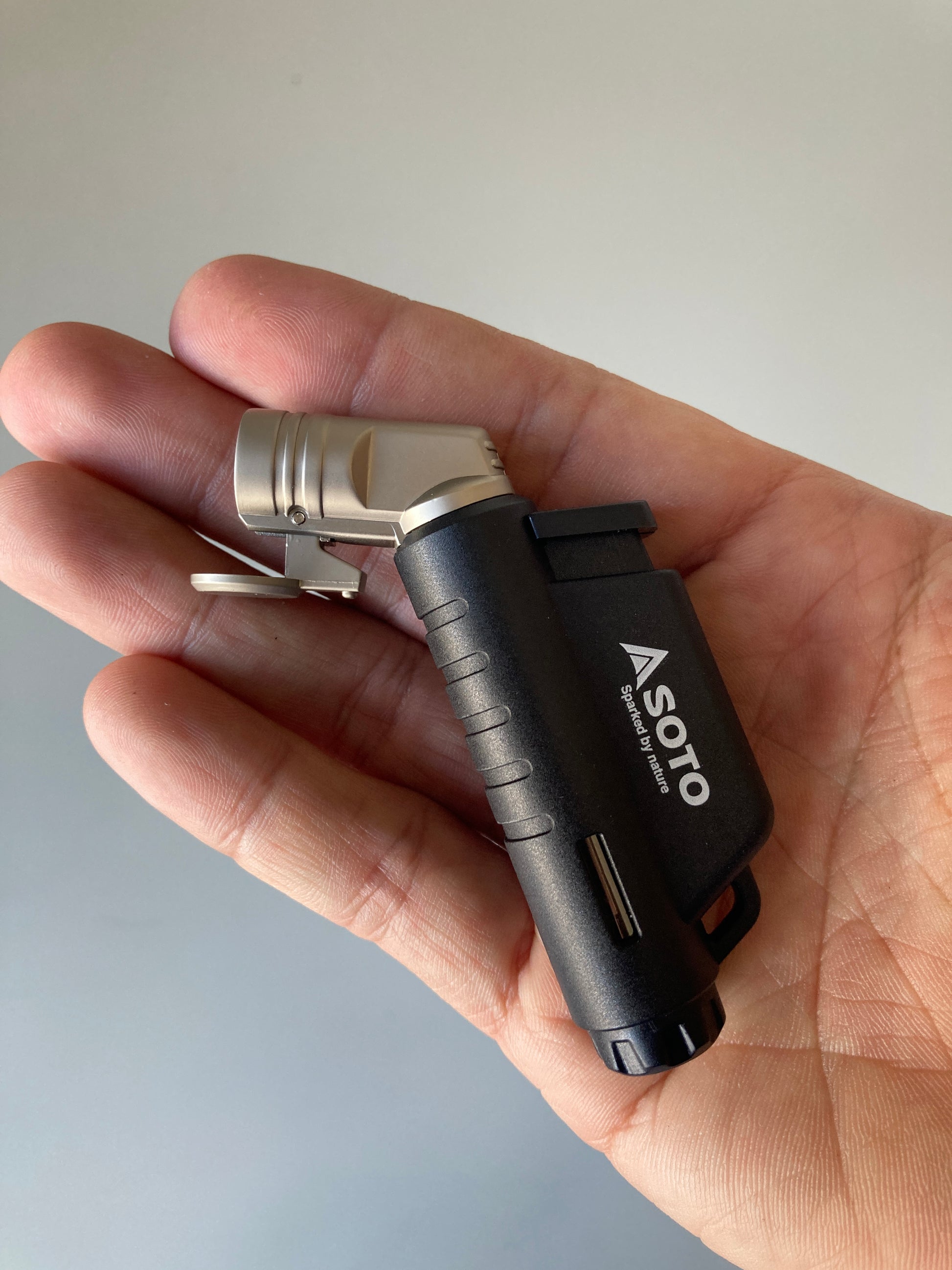 手のひらに、すっぽり収まる超小型強力耐風バーナー。